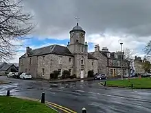 The Speyside Orphanage (also known as the Speyside Charity/Free School) was established in 1795, with funds from Lady Grant of Monymusk.[23][24] It was originally built by local builder John Russell but was damaged by fire and rebuilt in 1824, it closed in 1975.[23][25] The building was converted to a heritage centre and then later to private flats in 1986.[26] The building is Category A listed and has a small clock tower, with an electric public turret clock from 1975 (the earlier clock is in the town museum).[25][24]