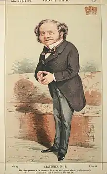 During the American Civil War, Granville was non-interventionist along with the majority of Palmerston's cabinet. His memorandum against intervention in September 1862 drew Prime Minister Palmerston's attention. The document proved to be a strong reason for Palmerston's refusal to intervene and for Britain's relations with the North to remain basically stable for the rest of the conflict despite tensions.[9] From 1866 to 1868, he was in opposition, but in December 1868 he became Colonial Secretary in Gladstone's first ministry. His tact was invaluable to the government in carrying the Irish Church and Land Bills through the House of Lords. On 27 June 1870, on Lord Clarendon's death, he became foreign secretary.[2] With war clouds gathering in Europe, Granville worked to authorise preliminary talks to settle American disputes and in appointing the British High Commission to sail to the United States and negotiate the most comprehensive treaty of the nineteenth century in Anglo-American relations with an American commission in Washington.