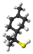 Grapefruit mercaptan is the common name for a natural organic compound found in grapefruit. It is a monoterpenoid that contains a thiol (also known as a mercaptan) functional group. Structurally a hydroxy group of terpineol is replaced by the thiol in grapefruit mercaptan, so it also called thioterpineol. Volatile thiols typically have very strong, often unpleasant odors that can be detected by humans in very low concentrations. Grapefruit mercaptan has a very potent, but not unpleasant, odor, and it is the chemical constituent primarily responsible for the aroma of grapefruit.[1] This characteristic aroma is a property of only the R enantiomer.[2]