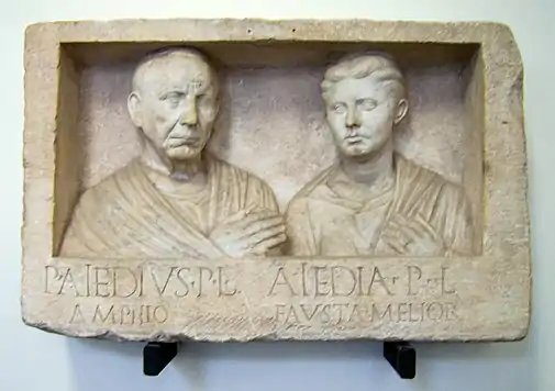 Publius Aiedius Amphio, freedman of Publius // Aiedia Fausta Melior, freedwoman of Publius
