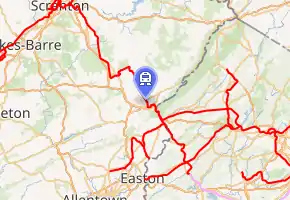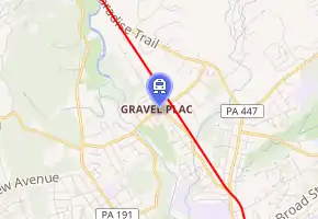 Gravel Place is a location within Arlington Heights, Pennsylvania, about three miles (4.8 km) northeast of East Stroudsburg. It is neither incorporated nor a census-designated place, but has a name recognized by the USGS.[1] From the 1880s to about 1950, it was a railroad yard of the Delaware, Lackawanna and Western Railroad (DL&W) on its mainline from Hoboken Terminal in New Jersey, which served New York City by ferry, to Scranton, Pennsylvania, continuing northwest into New York State with its western terminus in Buffalo, New York. It is just north of present Mill Creek Road.