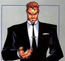 Later, using the resources he had gained through the Friends of Humanity, and with the support of the government-sponsored anti-mutant taskforce, Operation: Zero Tolerance, Creed nominated himself as a presidential candidate and ran on an anti-mutant platform.[4][5] Capitalizing on a near-hysterical fear of mutants in the general public (specially after the Onslaught debacle),[6] Creed's popularity swelled, which led to the Daily Bugle newspaper launching an investigation into Creed's activities, on-principle.[7] When a reporter from the Bugle obtained information regarding Creed's parentage, Zero Tolerance's leader, Bastion, killed the journalist to prevent the news from leaking out.[8] Although they stopped the reporter, Creed did not manage to catch that the X-Men had also infiltrated his presidential campaign, by planting Bobby Drake (under the alias of "Drake Roberts") and Sam Guthrie (under the alias of "Samson Guthry") as Creed's assistants.[9][10]