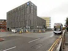In the 1980s, a significant area by Great Ancoats Street was redeveloped as Central Retail Park, which was described as a "row of big-box stores fronted by sterile parking space".[2] Before closure It contained branches of Toys "R" Us, Mothercare and others. An Ibis hotel is at the corner of Pollard Street, south of the Ashton Canal and there are other hotels including a Travelodge and The City Warehouse Aparthotel near the junction with Oldham Road and where Great Ancoats Street becomes Swan Street.