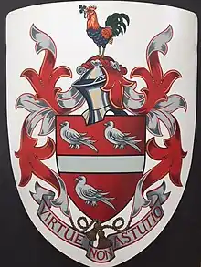 It has been the ancestral seat of the Bidlake family from the 13th century and, other than for a period of 68 years, has been owned by the family since then.[2] The Bidlake family crest is described as "a cock holding in the beak a trefoil, all proper" and the family motto is "Virtute non astutia" (By excellence, not by cunning).[3]