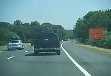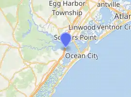 The Garden State Parkway is a tolled limited-access highway that serves as the primary route connecting the Jersey Shore to points north and south in New Jersey. Upper Township in Cape May County connects with Somers Point via the Great Egg Harbor Bridge on the Parkway.[1] This bridge first crosses over Harbor Road, which is the last street in Beesley's Point, connecting homes along Great Egg Harbor Bay and Peck Bay to U.S. Route 9.[2][3] The bridge then crosses Great Egg Harbor Bay to Drag Island, which it crosses as a causeway. A small portion of the bridge enters Egg Harbor Township. Another bridge crosses Drag Channel to the mainland of Atlantic County in Somers Point.[4][1]
