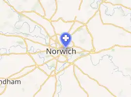 The Great Hospital is a medieval hospital that has been serving the people of Norwich in Norfolk, England, since the 13th century. It is situated on a 7-acre (2.8 ha) site in a bend of the River Wensum to the north-east of Norwich Cathedral. Founded in 1249 by Bishop Walter de Suffield, the hospital was originally known as Giles's Hospital. What makes the hospital notable today is its history of continuous care, the range of existing medieval buildings on the hospital grounds (most of which are still in use), and the extensive archives that record the hospital's long history.[1]