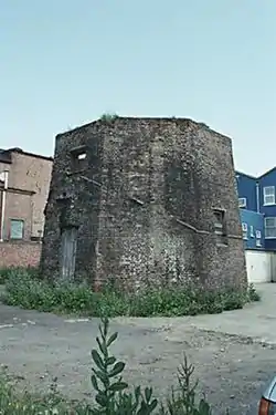 In 2006, planning permission was applied for, and granted, to convert the existing mill base into a flat, with a new smock tower built on the base containing another flat, and an extension containing a third flat. Construction started late in 2006.[3] The replica windmill will have a stage and dummy sails.[4] The cap was lifted onto the mill tower late in 2007.[5] On 23 January 2008 a fire started in the mill tower.[6] The fire was later declared not to have been a case of arson.[7]
