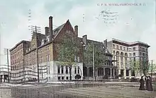 Between 600 and 1,000 buildings were destroyed by the fire̳,[1] with few surviving the blaze.[2] The Regina Hotel at the north of the city survived, as did the Bridge Hotel at the south-east.[2] A side building of the Bridge Hotel was used as a makeshift morgue.[2] According to Alderman Gallagher, a Vancouver businessman, who witnessed the fire and the aftermath, there were 21 bodies (or parts thereof) found immediately after the fire, while others were discovered during the cleanup and rebuilding.[2] The exact number of dead is unknown, mostly because Vancouver's population at this time was constantly changing due to its rapid expansion as well as the transient nature of many of the mill workers.[1][3]