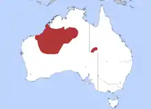 Once widespread in arid, semi-arid and relatively fertile areas covering 70 per cent of mainland Australia,[14] by 1995 the bilby was restricted to arid regions and classed as a threatened species.[15] Before the extreme contraction of its range to remote northern desert areas, the species was well known around Adelaide, especially in the city parklands,[16][17] and it was also recorded as living around Perth.[18]