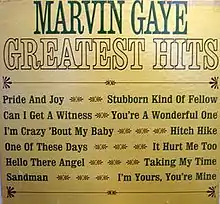 Greatest Hits is a 1964 greatest hits album, the first for American R&B-soul singer Marvin Gaye, released on the Tamla label. Released during Gaye's first period of success, it was also his first charted album as a solo artist after making his album chart debut with the Mary Wells duet album, Together, the same year.