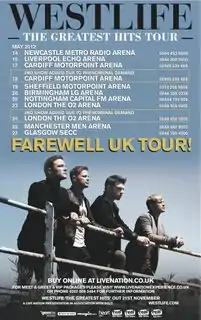 The Greatest Hits Tour (also known as The Farewell Tour)[1] was the twelfth concert tour by Irish boy band, Westlife. The tour, visited the Europe and Asia and supported the group's compilation album, Greatest Hits. After the tour finished, the group disbanded after performing for 14 years until their reformation.[2]