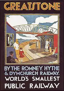 Opened on 24 May 1928, this station was located only 1.3 miles (2.1 km) south of the station at New Romney. However, there were extensive contemporary plans for the development of a new community of Greatstone-on-Sea. It was with this possible future traffic in mind that the station was built, and heavily equipped. Some records imply that the station may have been erected at the specific request of the building company contracted to construct the local houses, although the evidence remains ambiguous. The station was equipped with two platforms, with waiting rooms on each, including a ticket office, a signal box, and a water tower. Photographs taken in the 1920s and 1930s show a footbridge between the platforms, as does a 1930s railway advertising poster, but contemporary eye-witness accounts record that this footbridge was never completed, with no steps installed on either side. Photographic evidence from 1936[note 1] shows a tearoom on the seaward platform.