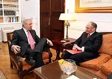 Greek–British relations are foreign relations between Greece and the United Kingdom. Greece and the United Kingdom maintain excellent and cordial bilateral relations[1] and consider each other an ally [2] with the Greek Prime Minister, Kyriakos Mitsotakis, paying an official visit to London in 2021.[3] Greece and the United Kingdom are both members of the United Nations, NATO and the Council of Europe. The United Kingdom is also viewed very favorably in Greece. According to a global opinion poll, 77% of Greeks view the United Kingdom favourably, while only 10% don't.[4] The British have a very positive opinion of Greece as well. 65% of the British view Greece positively, while only 5% view it negatively.[5]