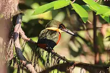 The green-and-rufous kingfisher (Chloroceryle inda) is a resident breeding bird in the lowlands of the American tropics from southeastern Nicaragua south to southern Brazil.