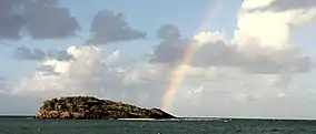 Green Cay National Wildlife Refuge, encompasses the 6 ha (14 acre) island of Green Cay lying midway between the town of Christiansted and Buck Island Reef National Monument, just north of Saint Croix in the United States Virgin Islands of the Caribbean. It is administered as part of the Caribbean Islands National Wildlife complex. There is a smaller "Green Cay" off the coast of Saint Thomas (18°18′37″N 64°54′28″W).