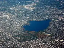 Within the lake is an artificial island that is commonly called Duck Island but was originally named Swan Island. It was built by the Works Progress Administration in 1936. The island was built (with dumped gravel) as a wildlife sanctuary and later housed some swan gifted to the city by Vancouver, British Columbia. The park board named the island Waldo's Wildlife Sanctuary, after Waldo J Dahl, who took care of the swan. The swans, which were intended to start a small flock, did not have proper breeding habitat around the island. Future attempts to breed swans on the island (at least until the 1970s) were also failures. The state game commission officially made the island a reserve, off limits to people, in 1956. That designation ended in 1983. Though not noted as supporting any unique wildlife, the Washington Department of Fish and Wildlife notes the island is part of a bald eagle management buffer encompassing the south end of the lake. The parks department still considers the island off-limits to people for safety reasons. But there is an occasional presence of rope swings and empty alcohol containers.[9]