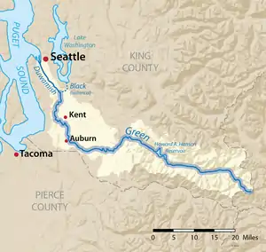 ![]() Map of the Duwamish/Green River watershed with the Green River highlighted | |