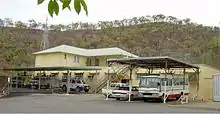 In the early 1960s this complex was used as the 10 Sqn Radio Section workshop. This was while a new building was being constructed at the Garbutt Base near the end of the main runway. The new building was occupied in early 1964. Sqn Ldr K Fraser the Senior Radio Officer lived in the house on top of the building with his family during this time.