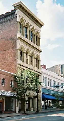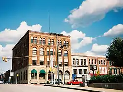 - Masonic Temple Building (132 South Main Street) is a four story building with an Italianate cast iron facade, now used as law offices. Built in 1872, it is the oldest building in the historic district.[10]
