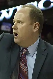On December 15, 2015, Gard was announced as the interim head coach after Bo Ryan announced his retirement following the Badgers win over Texas A&M Corpus Christi.[1] Gard had been Ryan's longest-serving assistant, having coached together for 23 years at the time of the transition.[1] They had coached together at three schools—Gard's alma mater of Wisconsin–Platteville, where he had played on the varsity baseball team as a freshman;[2] Milwaukee; and Wisconsin.[3] In the process, Gard became one of the most respected assistant coaches in the college game.[1][3][4]