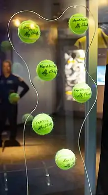 As part of his personal allowance, Chamitoff brought the first bagels into space, 3 bags (18 sesame seed bagels) of Fairmount Bagels with him, from his cousin's bagel bakery.[11][12] He also bought a velcro chess set and started playing games against mission control, which got quite competitive.[13] Chamitoff also placed a Mezuzah shaped like a rocket made by British-Israeli silversmith Laura Cowan "on the door post near his bunk bed" on the International Space Station. [14][15] [16]