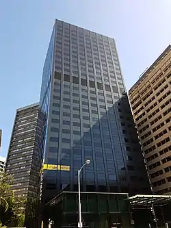 Grenfell Centre, also known as The Black Stump,[1] is a high rise office building located at 25 Grenfell Street in the Adelaide city centre. It is the ninth tallest building in Adelaide, South Australia, with a height of 103 metres (338 feet).[2] It was the tallest building in the city until surpassed by the Telstra House in 1987.[1] It has 26 floors and was completed in 1973. In the 1980s, the building's foyer and interior were refurbished. A ten-metre antenna was attached in 1980 and upgraded with digital transmitters in 2003, increasing the height a metre further.[3]