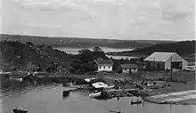 At the break-out of Operation Weserübung—the start of the German occupation of Norway on 9 April 1940—the Luftwaffe bombed Gressholmen at 08:30.[24] At the time there were two Junkers Ju 52s at the airport, one was for the Royal Norwegian Navy Air Service and the other was intended for civilian use.[25] Throughout the Second World War there was some German activity at the airport.[10] After the end of the war Gressholmen was taken over by the Royal Norwegian Air Force.[11] However, they only remained at the aerodrome until 1946.[10] They retained ownership of the facility until 1953 when it was sold to ferry operator Båtservice, who refurbished the hangar and docks and used it for winter storage of their ferries.[11]