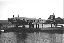 Deutsche Luft Hansa originally used Dornier Do J Wal aircraft. German mechanical crew arrived on 11 July and the first landing took place on 16 July, surrounded by festivities.[9] The first revenue landing took place at 18:30 on 18 July. The route flown was from Szczecin via Copenhagen and Gothenburg to Oslo. In addition to passengers, the service had carried post.[10] Flights lasted until 30 September when the season ended. Deutsche Luft Hansa had then flown 636 passengers and 9,591 kilograms (21,145 lb) of post.[9]
