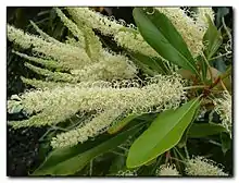 Foliage of the species is valued in floral arrangements for the unusual contrast of the dark green upper surface and gold to bronze underside.[7] The species was one of 5 selected for trialling as "native foliage products" from a total of 21 based on an evaluation of vase life, adaptability to varied climates and market acceptance.[8] It was incorporated in the bouquets handed to medal winners at the 2000 Summer Olympics in Sydney.[9]