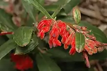 Subspecies brachystylis is listed as "Priority Three" by the Government of Western Australia Department of Biodiversity, Conservation and Attractions,[13] meaning that it is poorly known and known from only a few locations but is not under imminent threat, and subspecies australis and grandis are listed as "Threatened Flora (Declared Rare Flora — Extant)".[10][16][17] Subspecies grandis is also listed as "critically endangered" under the Australian Government Environment Protection and Biodiversity Conservation Act 1999, and a National Recovery Plan has been prepared. The main threats to the species include road maintenance, weed invasion and inappropriate fire regimes.[18][19]