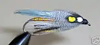 The Grey Ghost Streamer is an artificial fly, of the streamer type. Its primary function is to imitate smelt. The streamer's wing gives it a swimming action while trolling or using the Dead Drift technique.