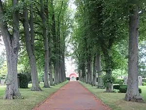The cemetery was originally mainly used by the poor while more wealthy citizens were buried inside the cathedral or in the graveyard which surrounded it. In 1805, burials inside churches were prohibited by law and not much later the graveyard surrounding the cathedral also disappeared, leaving Greyfriars as Roskilde's principal burial site.[2] In 1823, the cemetery was redesigned in the Romantic style.