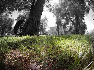 In May 1998, Greg & Marie were in the process of having an in-ground pool excavated on the property grounds, when contractors uncovered a 400- to 500-year-old Native American village or burial ground, likely inhabited by the Patwin tribe.[3] The coroner and Native American Heritage Commission were contacted, and the anthropology department of UC Davis was called in to recover the unearthed artifacts.