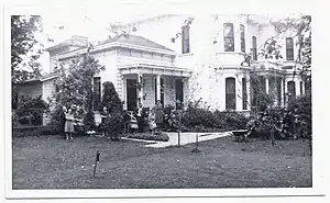 In 1886, Abram Griffith built a fine Victorian residence of Italianate architecture upon 20 acres (81,000 m2) of land in Cacheville, CA (now Yolo). This High Victorian Italianate residence exists as the grand dame of the homes in the town, sitting on the edge of the commercial district on a large spacious lot on the bank of the Cache Creek, just outside Woodland.[2] The residence boasts prominent bay windows, keystone arched, sash windows throughout, scrolled brackets at the eaves and classical corinthian columns complete the ornamentation. What came to be known as the Griffith Mansion, the residence was built upon the ancient site of an Indian burial ground. While digging to lay the foundation for the chimneys, the bones of an Indian buried in sitting position were discovered. There was a hole in the top of the skull, the brains had been removed and hand-made Indian money put in its place when he was buried. He was probably a Digger of note among his tribe as a financier, and perhaps thought money would be of more use than brains in the hunting grounds.