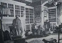 Arthur Sullivan visited Grim's Dyke with his nephew, Herbert, on 27 May 1893.[8] They stayed at the house for three days while Sullivan worked with Gilbert to finalise Utopia, Limited.[9] At the house, Gilbert had a vinery, apiary, orchards and a farm, with Jersey cattle, horses, pigs and fowl.[1] He also kept a variety of exotic animals including monkeys, lemurs, a lynx and many others.[10] Lady Gilbert designed the 30 acres of ornamental gardens at the house, including the rose garden[11] and orchard,[12] which remain on the hotel grounds.[13] After Gilbert's death in 1911, Lady Gilbert and the Gilberts' companion, Nancy McIntosh, continued to live there until Lady Gilbert's own death in 1936.[10][14]