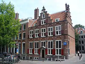 A striking building on the Grimburgwal, which has continued to exist, is the Huis aan de Drie Grachten (House on the Three Canals). This building from 1610 owes its name to the fact that it is surrounded on three sides by canals: the Grimburgwal on the south side, the Oudezijds Voorburgwal on the west side and the Oudezijds Achterburgwal on the east side. It is a double house with a stepped gable on each canal .