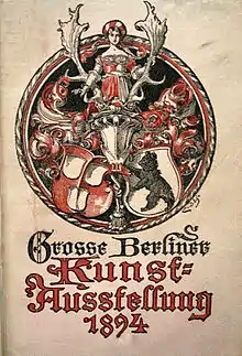 Until the 1890s, with the exception of the International Art Exhibition of 1891,[1][2] for more than a hundred years the Fine Arts Section of the Royal Academy of Arts organised and ran the Academic Art Exhibitions. The first Great Berlin Art Exhibition took place in 1893 on the basis of the statutes of a reorganisation of its internal relations, which was approved by Kaiser Wilhelm II. From then on, the entirety of the Berlin artistic community was to take over the art exhibition, represented by the Cooperative of the Members of the Royal Academy of Arts (Genossenschaft der Mitglieder der Königlichen Akademie der Künste) and the Berlin Artist's Association (Verein Berliner Künstler). The Düsseldorf artists' association was also granted a share in the management of the exhibition.[3] On 14 May 1893, the Prussian Minister of Culture Robert Bosse opened the first Great Berlin Art Exhibition.[4] This and subsequent exhibitions were held in the Glass Palace, the exhibition building of the State Exhibition Park at Lehrter Bahnhof.