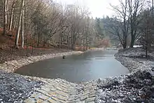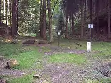 An educational path, the Flößersteig ("Rafting Trail") begins at the Neumann Mill, running parallel to the Kirnitzsch river to Bad Schandau. In the northern part of the Großer Zschand, under a rock overhang, is a cave, closed with an iron door that acted as an explosive chamber until the end of the Second World War in order to block the valley at this point.[2]