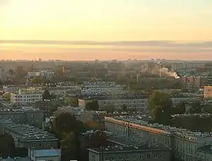 Grochów is a district of Warsaw, officially part of the borough of Praga-Południe although not connected at all to historical "Praga" district. It is one of the most notable residential areas of right-bank Warsaw. There are many blocks of flats, as well as many pre-WWI houses. Grochów is nicknamed "the lungs of Warsaw", owing to its many green spaces. Despite plans made by the former Communist authorities, Grochów had not transformed into strictly industrial district, even though it had been such in the 19th century.