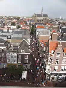 The Grote Houtstraat in Haarlem was originally just called the "Houtstraat" (Wood street) as it was the major road leading from the Grote Markt to the woods called the Haarlemmerhout.[1] Until the 15th century it ended at what is today the Gedempte Oude Gracht, at that time the southern canal of the city.[1] In the 15th century the town expanded southwards and the street was extended to the Gasthuissingel and a large town gate was placed near the bridge, which has since been torn down.