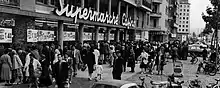 In 1957, Casino opened its first supermarket in Nice, under the brand Nica.[19] The store, which was totally self-service, offered both food and non-food products. The first supermarket with the Casino name opened in May 1960 in Grenoble.[17] A few months later, four new stores opened in Nice, Saint-Étienne, Firminy and Lyon. The first two Paris supermarkets opened in 1970 in Saint-Denis and Bagneux.[20] In March 1970, the first Géant Casino hypermarket opened its doors in Marseille.[20] It was then the biggest store in France with a surface of 16000 m². The shopping mall was made of 41 independent businesses and a Casino cafeteria. The SOMABRI company (SOciété des Magasins de BRIcolage/the company of DIY stores) was created in 1978 to enable Casino Group to be present on the DIY market. It opened its first two stores in 1978 in Toulouse Fenouillet and in Clermont le Brézet. Casino transferred its majority ownership to Castorama in October 1989.[21] · .[22]