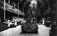 In the first quarter of the 20th century, the company developed a social action plan dedicated to its employees, with, in 1904, the launch of an insurance fund, the creation of a health service in 1905, benefits for large families and a birth premium in 1910 or even child benefits and profit sharing for all employees as from 1916.[12] In 1912, Casino created the Sports branch Casino employees’ Social Club, a sports organization in accordance with its sports corporatism policy.[13] The Social club opened its football section in July 1919 alongside other disciplines such as athletics or basketball. More commonly referred to as AS Casino, the Social club became "l’Association Sportive Stéphanoise" in 1927 then "l’Association Sportive de Saint-Étienne" in 1933. In 1923, in celebration of its 25th anniversary, Casino put in place a Pension Fund which ensured the security of employees leaving the company. The Casino share was quoted on the Stock Exchange as from 1910.