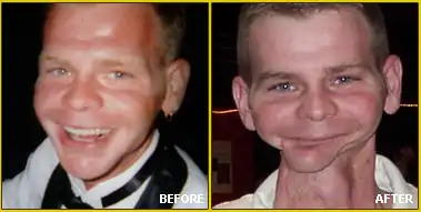 He subsequently endured more than forty operations[9] on his face, neck, and mouth, radiation treatments and chemotherapy. Doctors removed half of his tongue muscles and his jaw. They also took out half of his neck muscles.[4] Doctors took sections of healthy skin from his legs and grafted them to his face and neck.[10] Because of radiation treatments, all of his teeth were removed, and at age 19, he had to start using dentures. His lower jaw was replaced with fibula bone from his lower leg.[4] He was left severely disfigured by the surgeries.[6] After a long battle with mouth cancer, Von Behrens died in his home in Stewardson, Illinois, on September 8, 2015, at age 38.[3]
