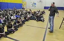 ![]() Gruen Von Behrens speaks to students in the Westridge Middle School in Nebraska | |