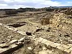 Guadalupe Outlier is an Ancestral Puebloan site in Chaco Culture National Historical Park, in New Mexico, United States. The site is described by author Stephen H. Lekson as "sitting atop the second-most spectacular setting of any outlier, a narrow high mesa overlooking the Puerco River, about 100 kilometres (62 mi) from Chaco".[1] Guadalupe Outlier is the easternmost of the Chacoan ruins and was occupied from roughly 920 to 1130 AD.[2] By the late thirteenth century it had been "remodeled and occupied by a Mesa Verde population".[2] The site was excavated by Lonnie C. Pippin between 1972 and 1975 as part of Eastern New Mexico University's Rio Puerco Valley Archaeological Project. The evidence from Guadalupe Ruin reveals some of these Chaco outliers were established only shortly after the initial development of the Great Pueblos in Chaco Canyon. Throughout their histories, these Chaco outliers were closely related to organized developments in Chaco Canyon and were tied to the Great Houses in the canyon by a network of roads. Nevertheless, despite the architectural similarities and networks of communication between Chaco outliers and the Great Pueblos in Chaco Canyon, the occupants of outlying Chaco towns such as Guadalupe Ruin had a material culture like that of the regionally differentiated village populations.[3]