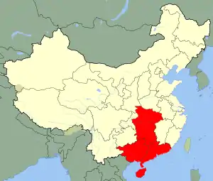 The Guangzhou Military Region was from 1955 to 2016 one of the People's Liberation Army PLA Military Regions, located in the south of the People's Republic of China. In May 1949, the Central China (Hua Zhong) Military Region (MR) was formed.[1] In March 1955, it was divided into two, the Guangzhou MR and the Wuhan Military Region. When the Wuhan MR was disbanded in August 1985, its troops stationed around the Hubei province were assigned to the Guangzhou MR.