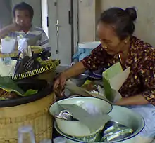 Gudeg can be packed into a besek (box made from bamboo)[7] or kendil (clay jar),[8] or canned.[9] Canned gudeg can last up to one year, although it doesn't taste as good as freshly cooked ones.[10]
