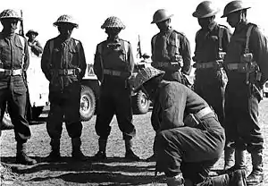 During the Indo-Pakistani War of 1965, Guides Cavalry was part of the 6 Armoured Division, equipped with M48 Patton tanks. The regiment, under the command of Lieutenant Colonel Amir Gulistan Janjua, greatly distinguished itself in the Battle of Chawinda, considered to be the greatest tank battle since World War II. On 7 September 1965, the Indians opened their main offensive with one armoured and three infantry divisions in the Sialkot Sector and penetrated up to Phillaura. However, in an audacious action, 25 Cavalry threw back the Indian armoured division, which took two days to regain its balance. In the meantime, 6 Armoured Division was inducted to counter the enemy on the Chawinda Front. The Guides Cavalry was deployed at Badiana, west of Chawinda to protect the division's left flank. On 11 September, the Indians renewed their offensive but were unable to capture the pivotal position of Chawinda. They also made a flanking move towards Bhagowal and Khakanwali in the west, where they were effectively checked by the Guides Cavalry. On 14 September, the Indians resumed their attack but again, could not breach the defences of Chawinda. At the same time, they tried to outflank the town from the west. It was here that the decisive tank battles of the war were fought in which Guides Cavalry covered itself in glory. The regiment was part of an ad hoc Task Force guarding the area between Chawinda and Sialkot. The Guides Cavalry was engaged in fierce fighting near Badiana, where it beat back repeated Indian attacks and inflicted heavy losses on the enemy armour.[12][13] The regiment was awarded five Sitara-i-Jurat for its excellent performance in the war.[14]