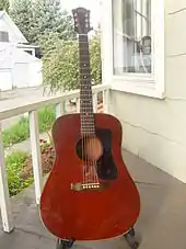 The first Guild workshop was located in Manhattan, New York, where Dronge (who soon took over full ownership) focused on electric and acoustic archtop jazz guitars. Much of the initial workforce consisted of former Epiphone workers who lost their jobs following their 1951 strike and the subsequent relocation of the company from Queens to Philadelphia.[3] Rapid expansion forced the company to move to much larger quarters, on Newark St. in Hoboken, New Jersey, in the old R. Neumann Leathers building.[4] The advent of the folk music craze in the early 1960s had shifted the company into production of an important line of acoustic folk and blues guitars, including a dreadnought series (D-40, D-50 and, later, D-55) that competed successfully with Martin's D-18 and D-28 models, and jumbo and Grand Concert "F" models that were particularly popular with blues guitarists such as Dave Van Ronk. Notable also was the Guild 12-string guitar, which used a Jumbo "F" body and dual truss rods in the neck to produce a workhorse instrument with a deep, rich tone distinctive from the chimier twelve-strings put out by Martin.