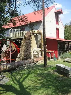 Guilford[2] Mill, also known as the Old Mill of Guilford and Bailes' Old Mill, is a historic grist mill located near Oak Ridge, Guilford County, North Carolina. It was built in 1822, and is a plain three-story, heavy timber frame building on a fieldstone foundation. It has a gable roof and one-story, shed roofed addition built of fieldstone. The grist mill is powered by an overshot wheel.[3]